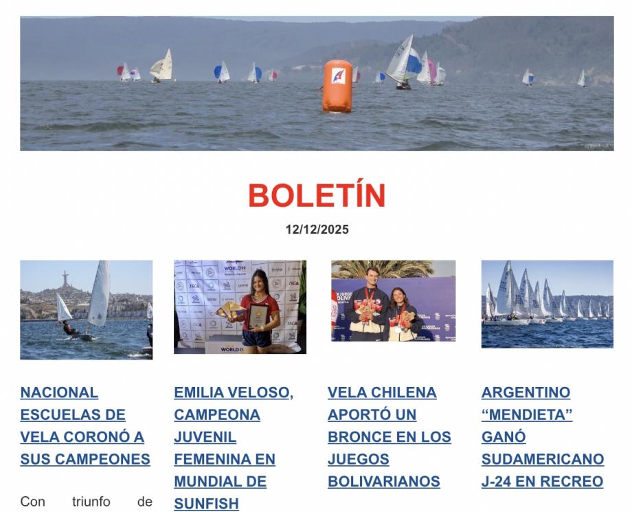 Una destacadísima actuación protagonizó Emilia Veloso en el Campeonato Mundial de Sunfish que tuvo lugar en Salinas, Ecuador, donde alcanzó el primer lugar juvenil en damas y el tercer lugar en la clasificación general de mujeres. “Fueron tres días y nueve regatas, con viento intenso, que fue una sorpresa, pero una buena sorpresa. Estoy muy contenta”, comentó la timonel de la Cofradía Náutica del Pacífico.