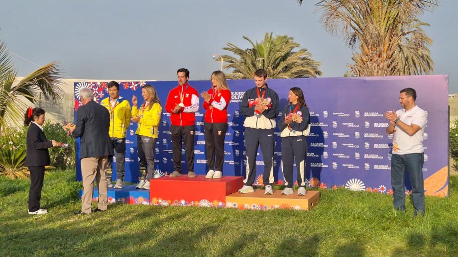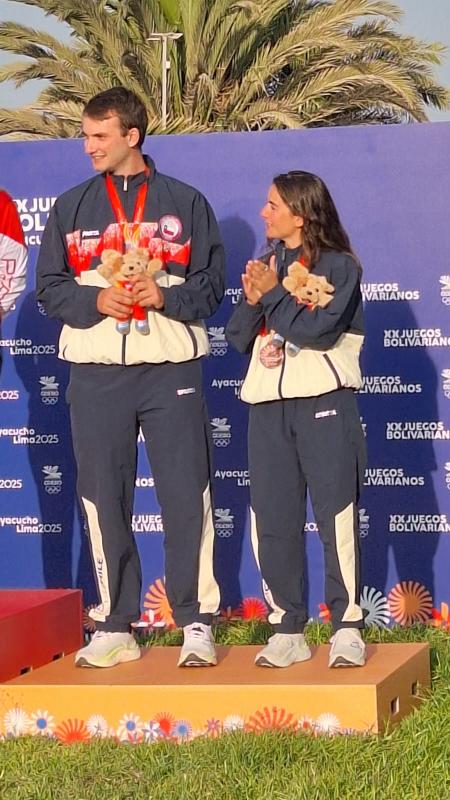 Los veleristas nacionales Matías Poncell y Trinidad Prieto consiguieron medalla de bronce en la clase Snipe de los Juegos Bolivarianos, que tuvieron como sede a la bahía de Paracas. A bordo de “Ta’lento”, la dupla chilena igualó en puntaje (-15) con los representantes de Ecuador, Jonathan Martinetti y Alisson Haon, quienes los superaron en el podio tras la aplicación del segundo criterio de desempate.